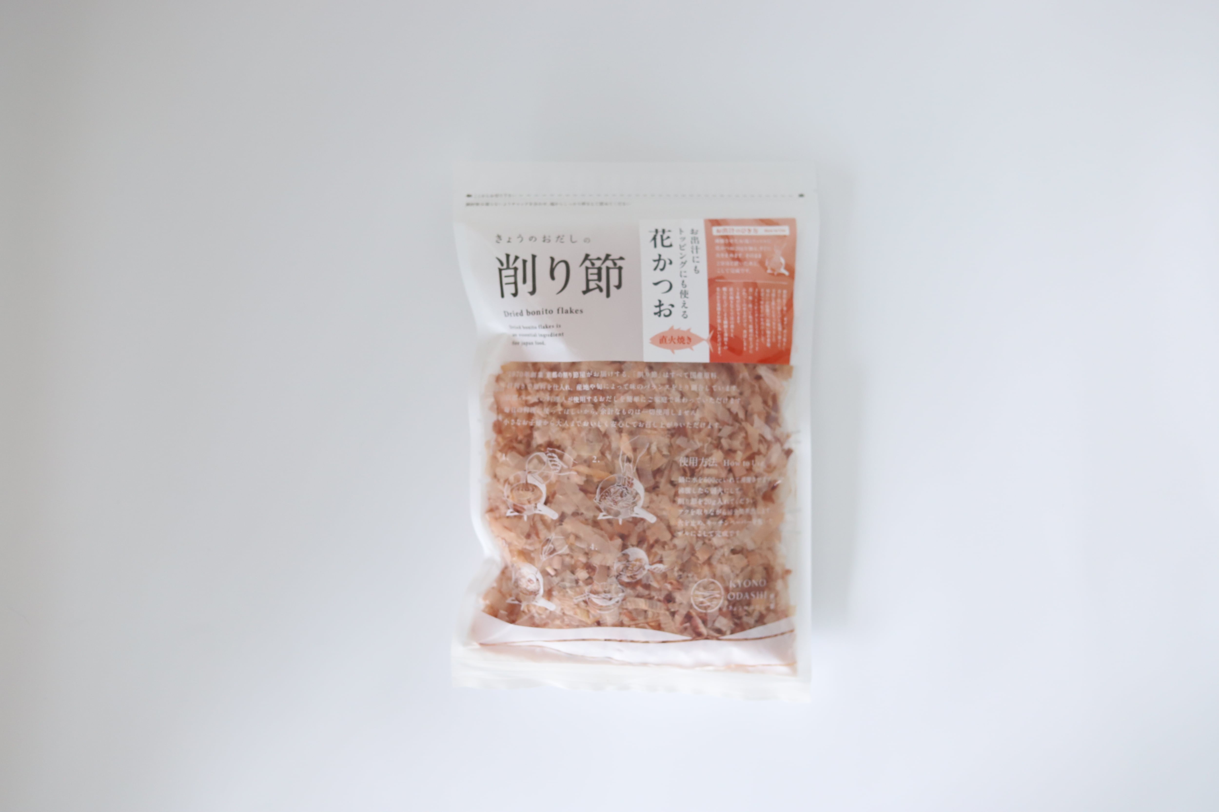 鰹節を一本ずつ直火で丁寧に焼き上げた後、繊細に薄削りした花かつおです。